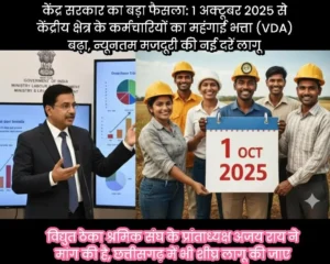 केंद्रीय श्रमिकों का बढ़ा महंगाई भत्ता : विद्युत ठेका श्रमिक संघ के प्रांताध्यक्ष अजय राय ने की मांग छत्तीसगढ़ में भी शीघ्र लागू की जाए