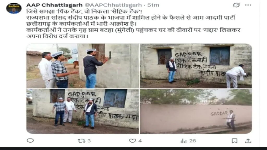 प्रदर्शन के दौरान कार्यकर्ताओं ने घर की दीवार पर ‘गद्दार’ लिखकर अपना आक्रोश जताया। इस घटनाक्रम की तस्वीरें पार्टी के सोशल मीडिया प्लेटफॉर्म X पर भी साझा की गई हैं, जो तेजी से वायरल हो रही हैं।