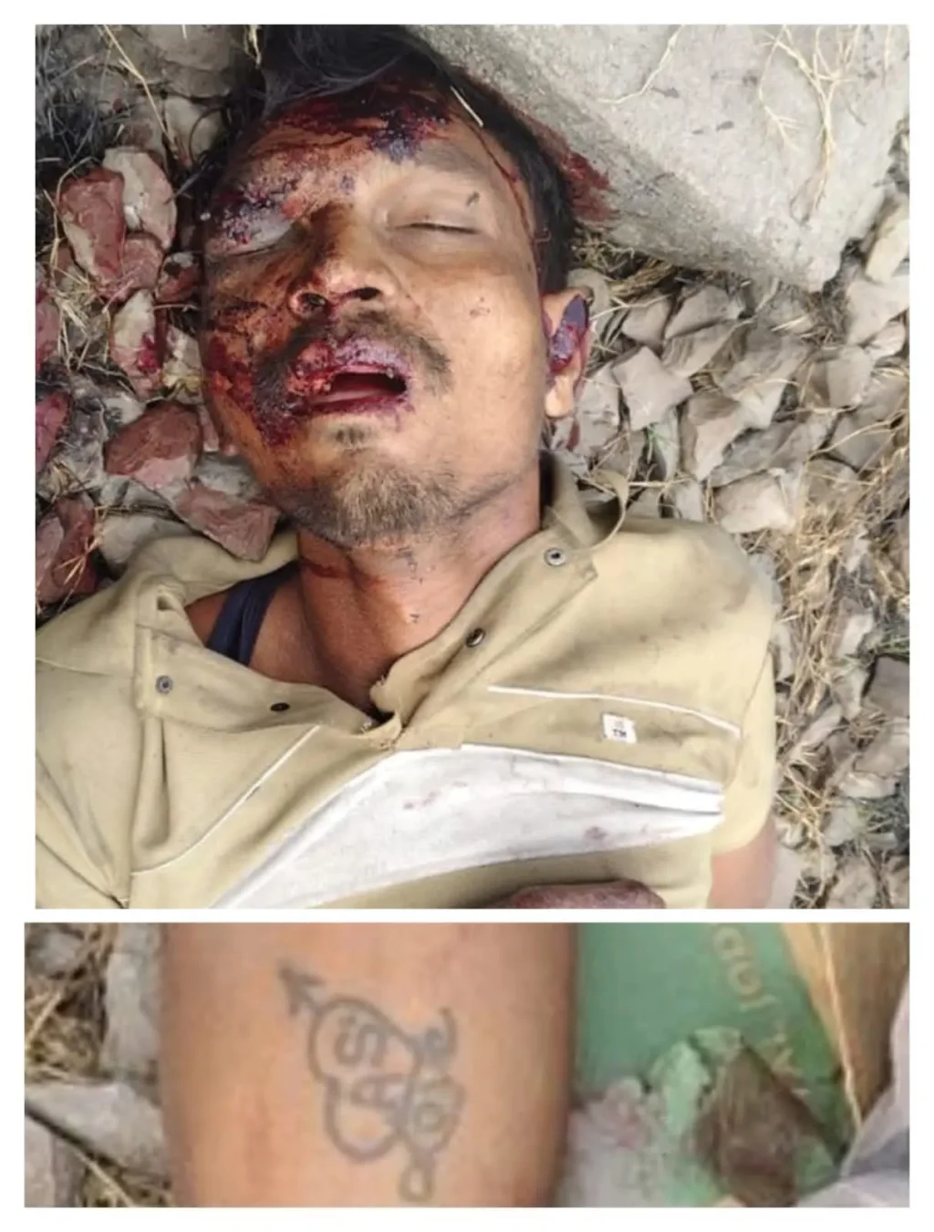 पहनावा: मृतक ने खाकी रंग की टी-शर्ट पहनी हुई है।