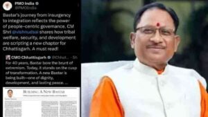 रायपुर। ‘बदलता बस्तर’ पर मुख्यमंत्री विष्णु देव साय के लिखे गए विशेष आलेख को प्रधानमंत्री कार्यालय ने सराहा है। साय का...