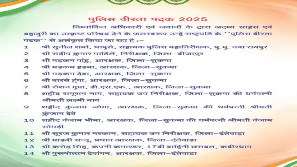 पुलिस वीरता पदक से सम्मानित होने वालों में वरिष्ठ अधिकारी से लेकर जवान और शहीदों के परिजन भी शामिल हैं। इस अवसर पर शहीद पुलिसकर्मियों के बलिदान को भी पूरे सम्मान के साथ याद किया जाएगा।