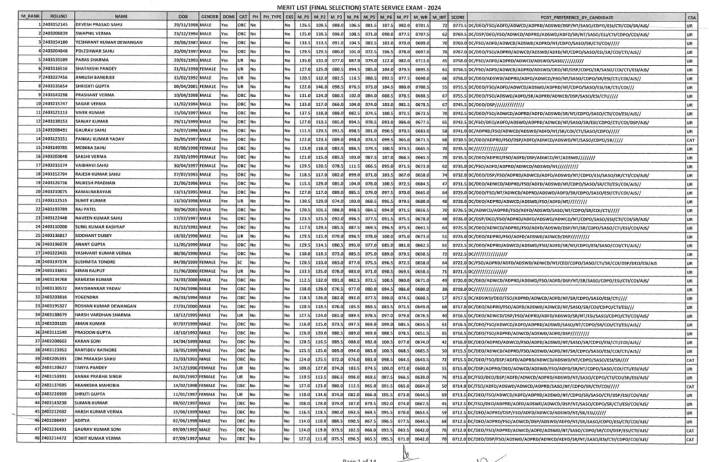 रायपुर। छत्तीसगढ़ लोक सेवा आयोग (CGPSC) ने साल 2024 की राज्य सेवा परीक्षा का परिणाम जारी कर दिया है। इस परीक्षा में देवेश प्रसाद साहू ने प्रथम स्थान हासिल करते हुए प्रदेश में टॉप किया है। घोषित टॉप-10 सूची में इस बार दो बालिकाओं ने स्थान बनाकर अपनी प्रतिभा का लोहा मनवाया है, जबकि अन्य स्थानों पर लड़कों का दबदबा देखने को मिला।