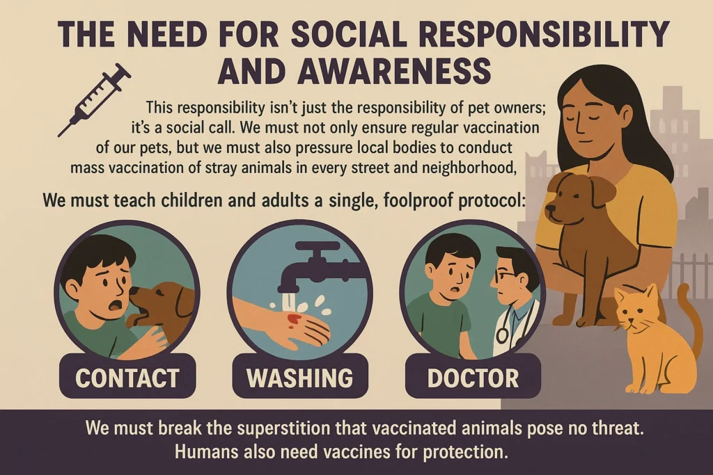 यह जिम्मेदारी सिर्फ पशु मालिकों की नहीं है; यह एक सामाजिक आह्वान है। हमें न केवल अपने पालतू जानवरों का नियमित टीकाकरण सुनिश्चित करना होगा, बल्कि हमें हर गली-मोहल्ले में रहने वाले आवारा पशुओं के सामूहिक टीकाकरण (Mass Vaccination) के लिए स्थानीय निकायों पर भी दबाव डालना होगा।