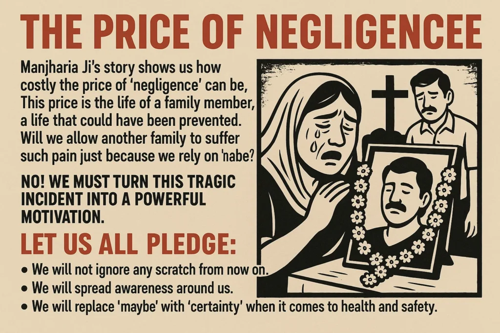 हमारा समाज अक्सर खतरों को नज़रअंदाज़ करने की आदत रखता है। हम सोचते हैं, “ऐसा मेरे साथ नहीं होगा,” या “घाव बहुत छोटा है,” या फिर “कुत्ता वैक्सीनेटेड था।” मंझरिया जी ने भी यही सोचा, और इस छोटी सी लापरवाही ने एक हंसते-खेलते परिवार को तबाह कर दिया। यह घटना हमें यह सबक सिखाती है कि विज्ञान और चिकित्सा के नियमों के सामने भावनाओं या अंदाज़ों की कोई जगह नहीं है। रेबीज वायरस किसी भी खरोंच या कटे हुए हिस्से से प्रवेश कर सकता है—और जब यह करता है, तो मौत निश्चित है।