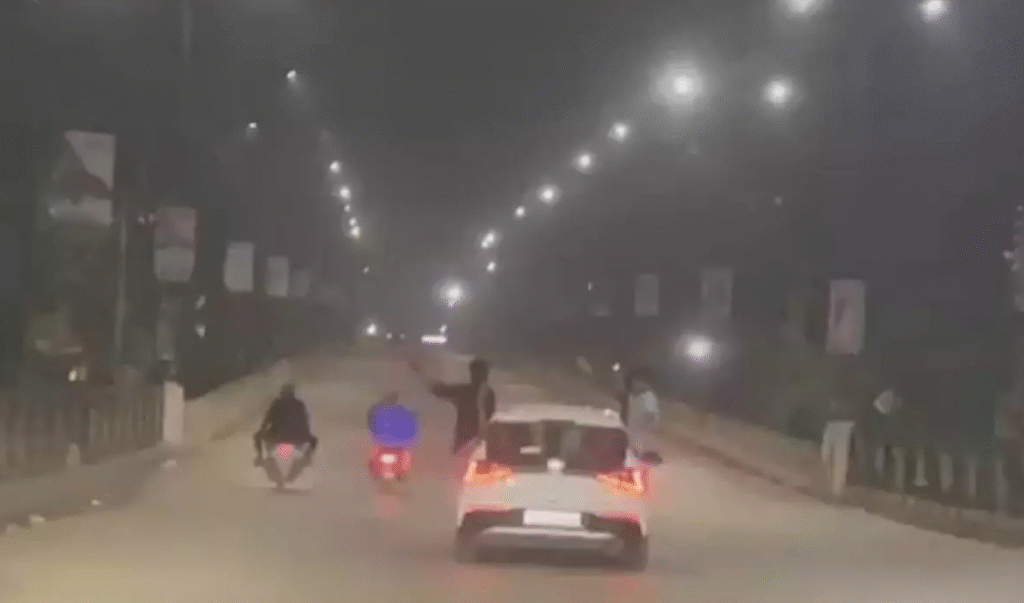 Mowa Overbridge Stunt रायपुर, छत्तीसगढ़ | 12 अक्टूबर 2025: राजधानी रायपुर की सड़कों पर देर रात तेज रफ्तार और खतरनाक स्टंट का सिलसिला थमने का नाम नहीं ले रहा है। ताजा मामला मोवा ओवरब्रिज का है, जहां शनिवार रात करीब 2 बजे एक आई-20 कार में सवार युवकों ने सरेआम सड़क पर हुड़दंग मचाया। कार में बैठे युवक खिड़कियों से बाहर झूलते हुए खतरनाक स्टंट करते नजर आए, जिसका वीडियो अब सोशल मीडिया पर तेजी से वायरल हो रहा है।