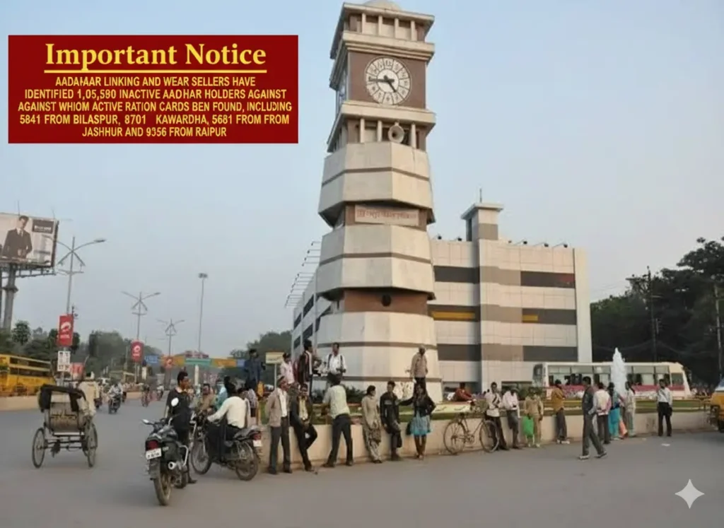 – आधार लिंकिंग और वैरिफिकेशन में 1,05,590 निष्क्रिय आधार धारकों के पहचान सामने आया है, जिसपर एक्टिव राशनकार्ड पाए गए हैं, उनमें से बिलासपुर से 5841, कवर्धा 8701, जशपुर 5681 और रायपुर में 9356